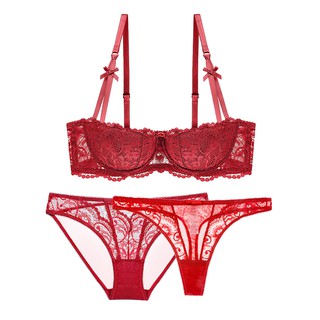 Bộ Đồ Lót Varsbaby 3 Món Gồm Áo Ngực Nửa Cúp Ren Hoa Quần Lót Thường Và Quần Lót Lọt Khe Vải Mỏng Cho N