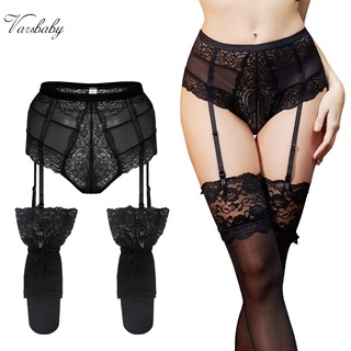 Bộ nịt bít tất + vớ Varsbaby nhún bèo ren xuyên thấu quyến rũ cho nữ