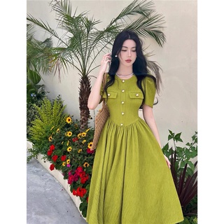 Đầm đũi gân xốp khuy vàng sang trọng, Váy Đũi Gân Xốp Vân Dọc Khuy Vàng 2 Màu Siêu Xinh