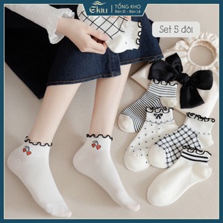 Tất cổ ngắn nữ set 5 đôi họa tiết đáng yêu, vớ nữ chất liệu vải Hàn Quốc co giãn 4 chiều - Ekiu Shop