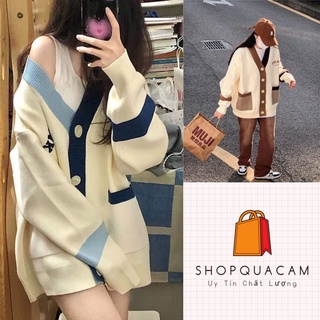 Áo Khoác Cadigan Dáng Dài From Rộng Cổ V Họa Tiết Huy Hiệu Kèm Viền Sọc Ống Tay Phong Cách Học Sinh Hàn Quốc Xinh Ak2691