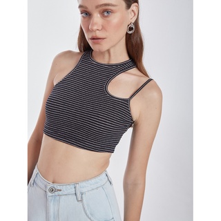COCO SIN - Áo Croptop Cut Out Sọc Đen