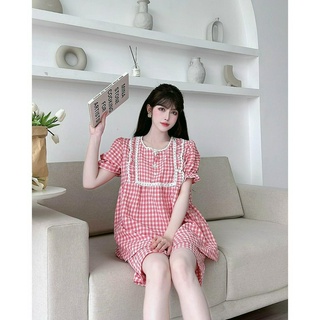 Đầm bầu babydoll , váy bầu xinh thiết kế tay bồng cổ sơ mi kẻ caro cực xinh new hot phù hợp mọi hoàn cảnh cho các Mom