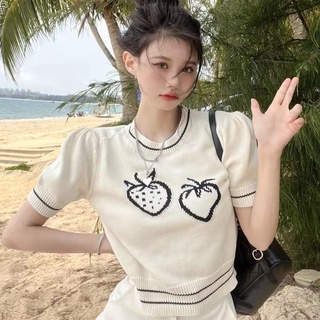 Áo Thun Dệt Kim Ngắn Tay Thời Trang Mùa Hè Pháp Ngọt Ngào Dành Cho Nữ