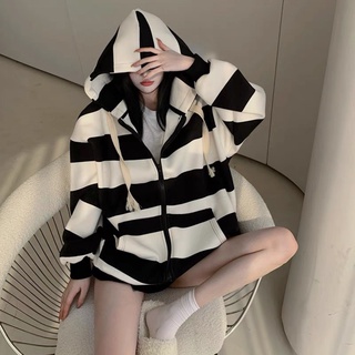 Áo Hoodie Nữ Phối Viền Sọc Hai Màu Đen Trắng Thời Trang Sành Điêu Phong Cách Giới Trẻ Thời Trang hhp 2022