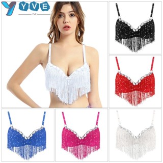 YVE Áo Ngực Khiêu Vũ Đính Kim Sa Phối Tua Rua Quyến Rũ