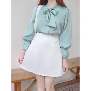 Áo thiết kế WONDERHOUSE nơ 2 dây tay bồng sau lưng chay thun tôn dáng