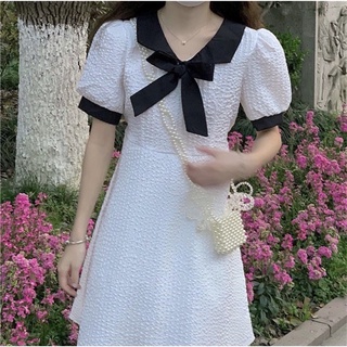 ĐẦM TRẮNG PHỐI CỔ ĐEN NƠ