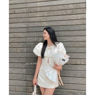 SET ÁO TAY RỚT HOA REN NỔI + KÈM SHORT TRẮNG 🤍❤️