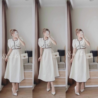 SET ĐẦM 2S TRẮNG VIỀN NÂU KÈM KHOÁC CROP