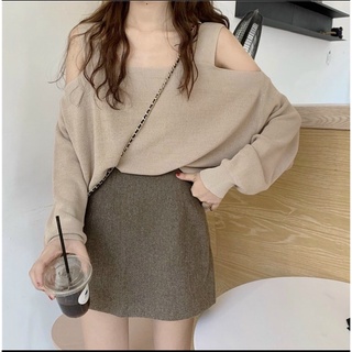 set quần suông trắng áo sơ mi kiểu lệch vai