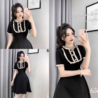 ĐẦM XÒE VOAN CỔ TIM THẮT NƠ PHỐI VIỀN SIÊU DỄ THƯƠNG