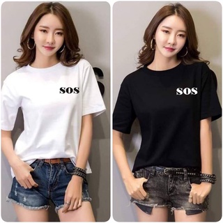 áo thun nam nữ tay lỡ in chữ SOS Ét o ét đơn giản dạo phố