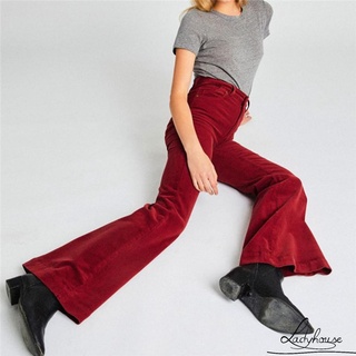 Quần Dài Ống Loe Lưng Cao Co Giãn Bằng Vải Nhung Màu Trơn Dành Cho Nữ