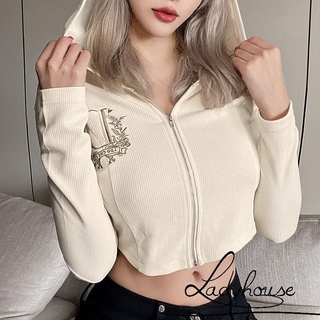 Áo khoác dài tay có khóa kéo thêu họa tiết thời trang cho nữ