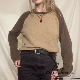 Áo Thun Raglan Tay Dài Cổ Tròn Màu Sắc Tương Phản Thời Trang Cho Nữ