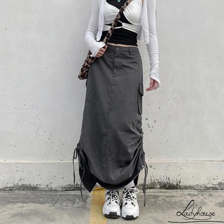 Chân Váy Dài Dáng Rộng Màu Trơn Dây Rút Tùy Chỉnh Thời Trang Mùa Hè Cho Nữ