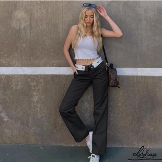 Quần Jean Dài Lưng Cao Dáng Suông Nhiều Túi Màu Trơn Thời Trang Cho Nữ