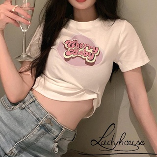 Áo Thun Crop Top Tay Ngắn Cổ Tròn In Họa Tiết Thời Trang Mùa Hè Dành Cho Nữ