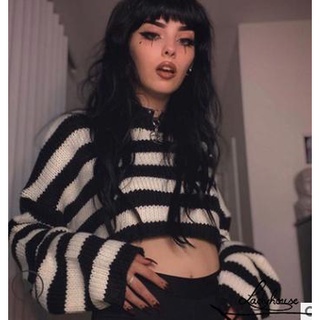 Áo Croptop Dệt Kim Cổ Tròn Dáng Rộng Họa Tiết Kẻ Sọc Trắng Đen S / M Cho Nữ