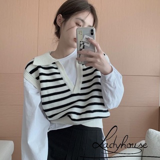 Áo Dệt Kim Không Tay Cổ Chữ V Họa Tiết Kẻ Sọc Thời Trang Thu Đông Dành Cho Nữ