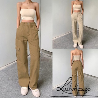 Ld-quần Jean Lưng Cao Ống Thẳng Màu Trơn Có Túi Và Túi Cho Nữ