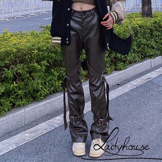 Quần Da Dài Lưng Cao Ống Đứng Màu Trơn Thời Trang Xuân Thu Cho Nữ