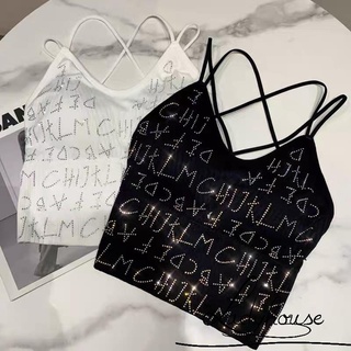 Áo Hai Dây Ôm Dáng In Chữ Đính Đá Có Đệm Ngực Gợi Cảm Cho Nữ