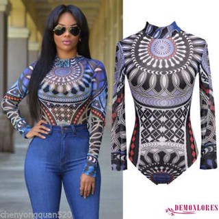 Áo liền quần Tay Dài Họa Tiết Totem Quyến Rũ Cho Nữ