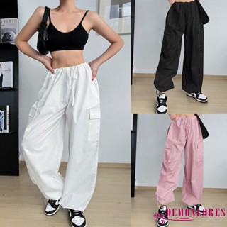 Demonlores Quần Dài Dây Rút Eo Thấp Màu Trơn Có Túi Lớn Thời Trang Đường Phố Mùa Xuân Cho Nữ