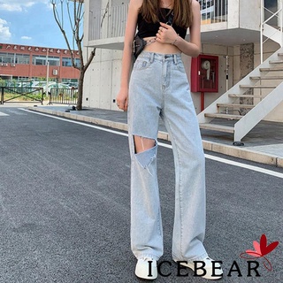 Quần Jean Dài Lưng Cao Ống Rộng Màu Trơn Phối Rách Thời Trang Cho Nữ
