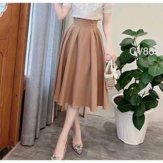 Chân váy xòe dáng dài lưng cao phối vạt bụng trẻ trung che bụng, xòe vặt bụng 2 cúc ốp d68cm