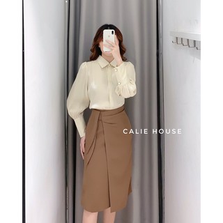 Chân váy công sở dáng dài qua gối phối li siêu xinh siêu che bụng MPd68cm