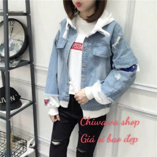 Áo khoác jean nữ có mũ nỉ viền tay đẹp hàng loại 1