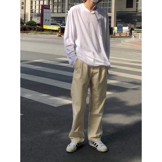 Quần kaki trơn ống rộng gài nút nam nữ Hàn Quốc