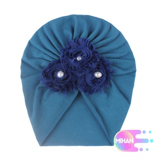 Mũ trùm đầu vải voan co giãn đính hoa ngọc trai cho bé MIHAN1