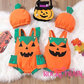 Bộ Áo Liền Quần Cổ Vuông In Họa Tiết Bí Ngô + Nón Thời Trang Cho Bé Trai Và Gái 0-24 Tháng Tuổi