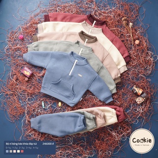 [CHÍNH HÃNG] Bộ quần áo dài tay nỉ bông kéo khóa đáp túi họa tiết trẻ emCookie