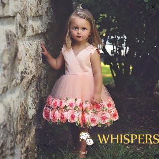 Đầm Liền Thân Phối Lưới Thêu Hoa Cho Bé Gái