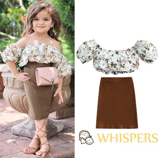Bộ Áo Trễ Vai Ngắn Tay + Chân Váy In Hoa Dễ Thương Cho Bé Gái