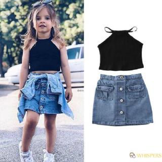 Set Áo Sát Nách+Chân Váy Jeans Cho Bé Gái Từ 1-6 Tuổi