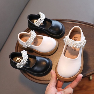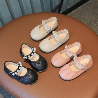 Giày Da Đế Mềm Chống Trượt Đính Ngọc Trai Phong Cách Hàn Quốc Cho Bé Gái 3-18 Tuổi