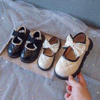 Giày Da Đế Mềm Đính Nơ Phong Cách Hàn Quốc Cho Bé Gái 2-8 Tuổi