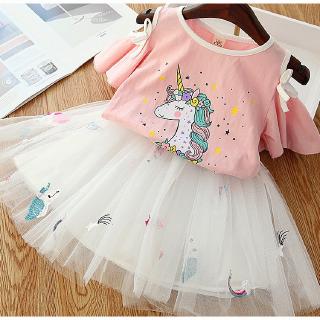 Đầm Xòe Công Chúa In Hình Kỳ Lân Hoạt Hình Dễ Thương Cho Bé Gái
