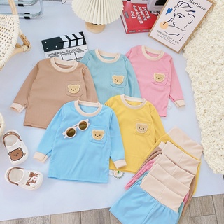 Bộ dài tay thu đông cao cấp cho bé 6-16kg, họa tiết chú Gấu, vải len tăm cao cấp giãn 4 chiều - BO111