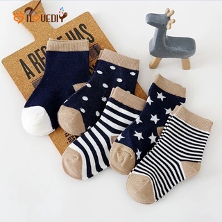 Bộ 5 Đôi Vớ Cotton Dệt Kim Họa Tiết Sọc In Hình Thú Cho Bé Sơ Sinh 0-6 Tuổi