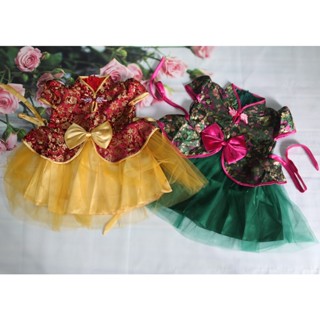 Đầm yếm vải gấm cứng phối voan mặc dịp lễ hội cho bé gái từ 9kg đến 29 kg