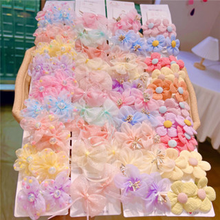 Hộp 50 kẹp 3 răng cho bé phụ kiện xinh xắn nhiều màu hình hoa nơ