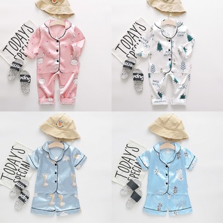 Bộ Đồ Ngủ 2 Món Bằng Lụa Tay Dài Thoáng Khí In Họa Tiết Hoạt Hình Dành Cho Bé Trai Và Bé Gái