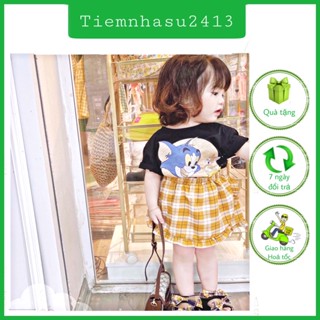 Set áo cotton hình mèo Tom kèm chân váy thô cho bé gái (08 - 18kg) - Tiệm Nhà Su
